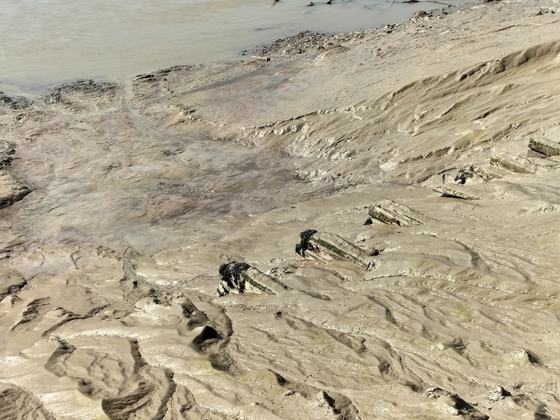 The banks of the Usk around Newport Bridge and close-ups of the bridge piers
