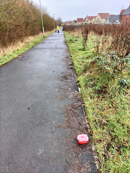 4th January 2026 and the first litter pick of the new year finds Lorraine and John in Toghill Crescent on this bright, cold day. The cold spell has been with us for a week now and is forecast to continue throughout the coming week. John regularly does some pre-pick picking in the lane twixt Chapel Plaister and the A365 (the lane leads to Old Jockey or Horse & Jockey). John related a tale from his latest pick when he found two 'unusual' objects. The first was a package wrapped in Sainsbury's plastic bags and sealed tightly with tape. Clearly, he had to find out what this package contained - on unwrapping, two engineering bricks were discovered. The second object was a dildo. Unfortunately, no pictures were taken of the objects but this is not the first dildo discovery - a picture (with commentary) of the first may be found here: 6th May 2018 article in the 10th photograph (scroll down).
