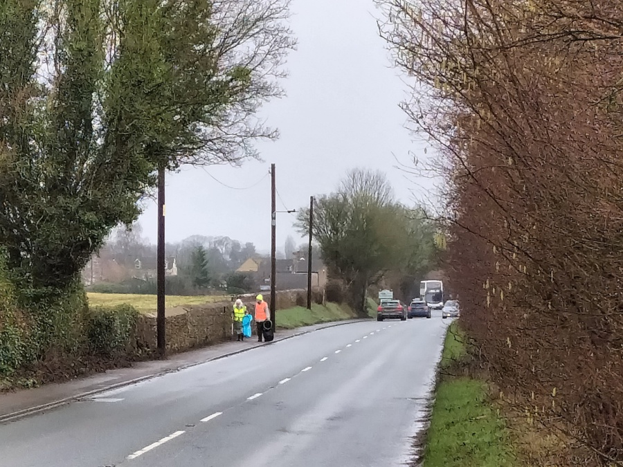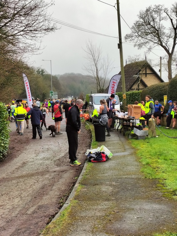1st February 2026 brings the Candlemas Eve litter pick. The cold spell of early January has gone and it has been raining for weeks (with floods on the Somerset Levels as usual). Luckily, we hit a dry, misty patch on this Sunday morning - the rain started just as we finished. Thie pick coincided with the annual Chippenham Harriers 'Slaughterford 9', a 9-mile cross-country run in the By Brook Valley, starting and finishing at the brow of Box Hill. Hundreds of runners take part and Rudloe is awash with vehicles - in the 'official' parking in Boxfields Road, Leafy Lane, the brow of Box Hill (Corsham side)... in fact anywhere a free spot can be found. The title picture shows Madeleine, Gordon (posing), Derrick and local/Wiltshire councillor Peter Wragg about to set off.
