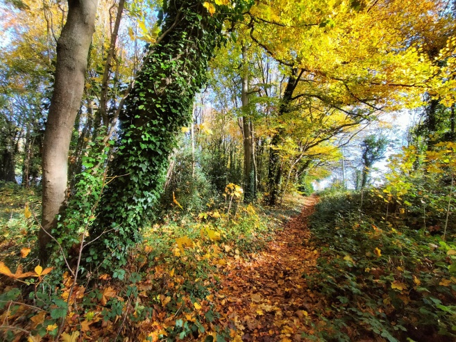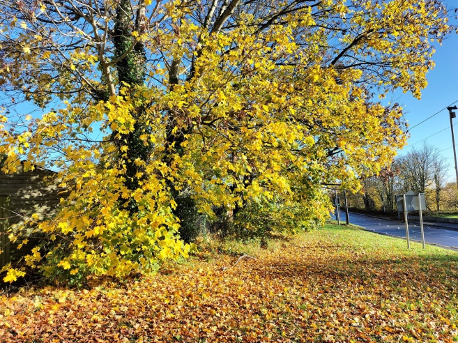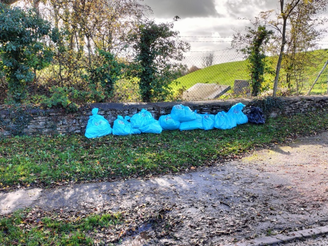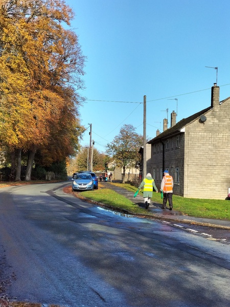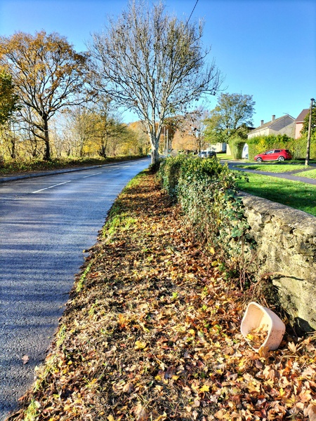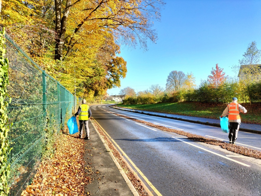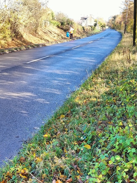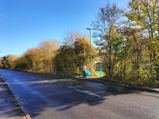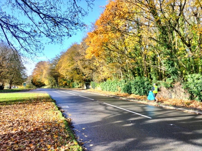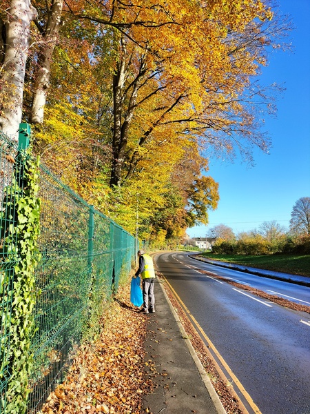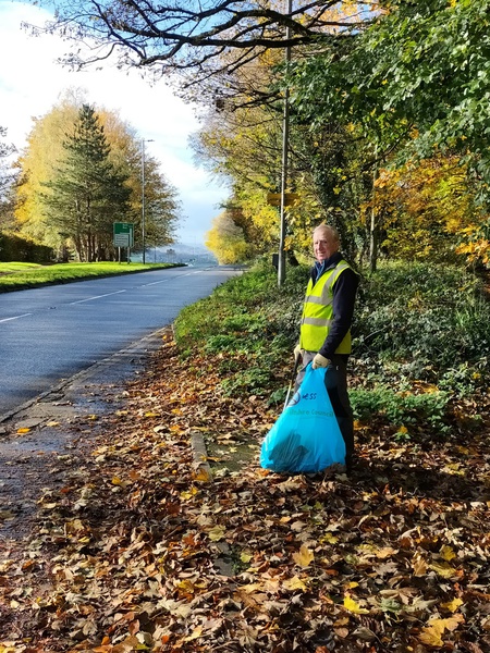 The November 2025 litter pick fell on All Souls Day, November 2nd. The title picture shows Ian in the Bradford Road with the beeches in full autumn colour beyond.