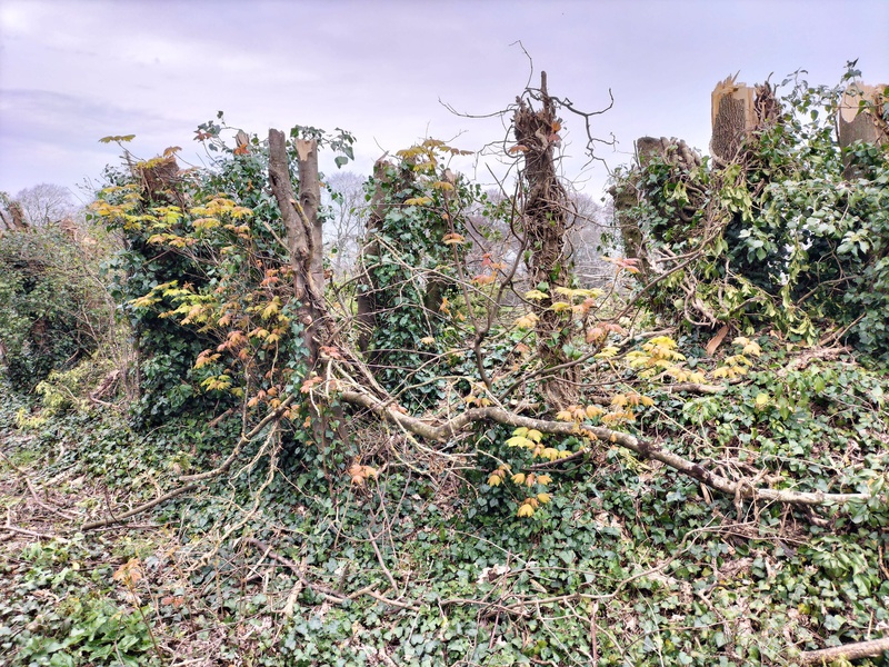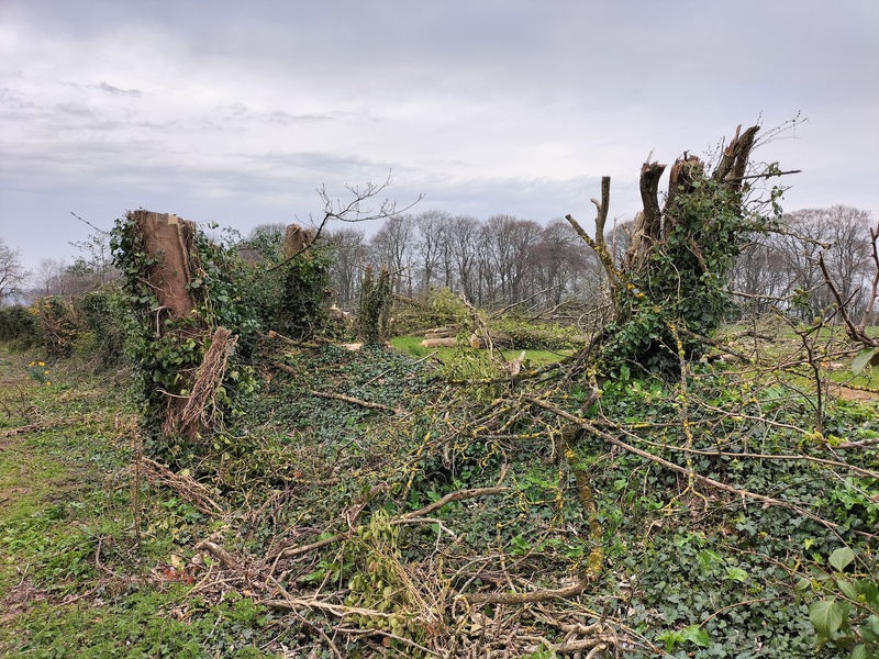 23rd March 2026 update... The remaining ten or so trees shown in the first gallery above have also now been felled - the current (final?) desolation is shown in the gallery below. The National Trust has started a campaign to call for urgent action to reverse the 'freefall' of nature in the UK. It says that the country is one of the most nature-depleted in the world. Millions of birds had disappeared in recent decades and only 14% of English rivers are in good ecological health. It is the first time in 15 years that the trust has urged the public to put pressure on ministers by asking for commitments to manage 30% of land for nature by 2030 and to stop weakening laws that protect nature.
