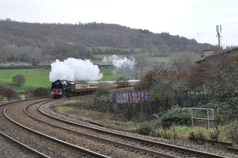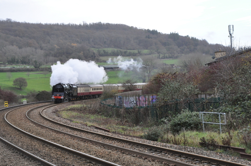 2nd December 2025 - BR Pacific 71000 Duke of Gloucester charging up the Limpley Stoke Valley towards Bathampton Junction with the Bath Christmas Market Express from Rugby. Trust the passengers enjoyed the market following their seven-hour journey!